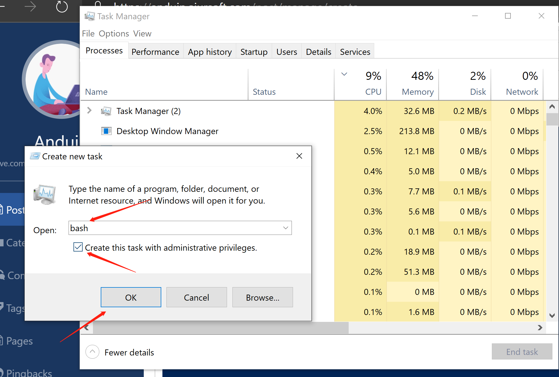 After installing the Azure CLI, open a new bash instance with admin privilege.