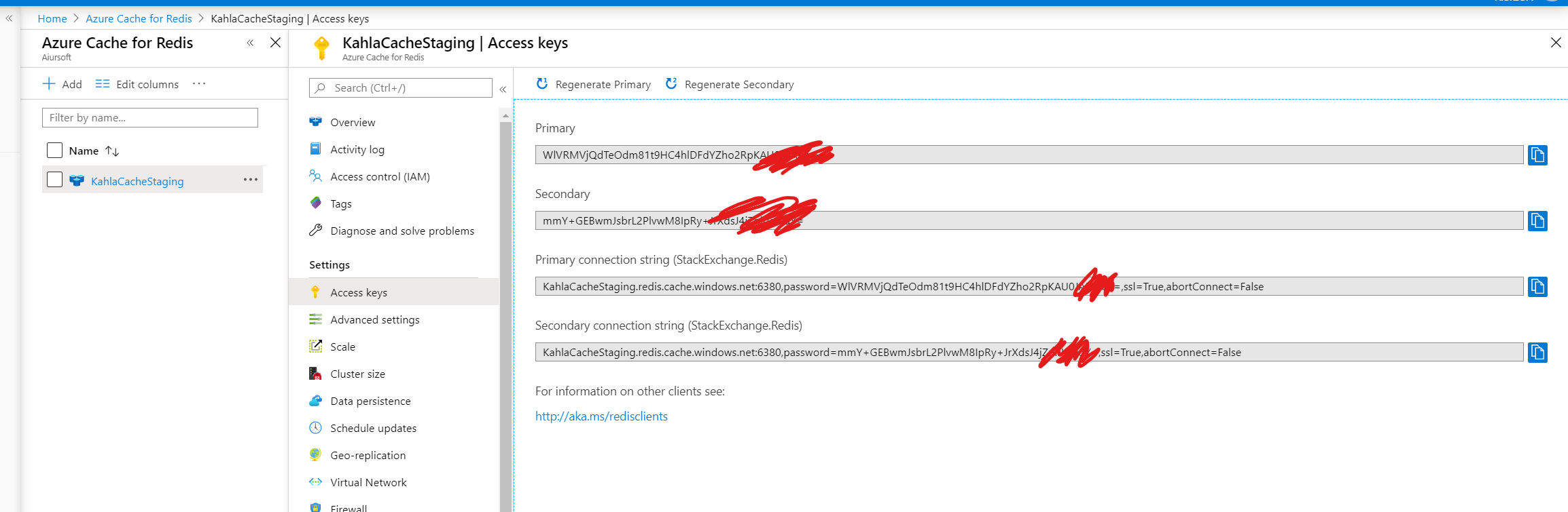 file:"Easycaching": { "Enabled": true, // Enable this to use Redis to replace MemoryCache. "Redis": { "MaxRdSecond": 120, "EnableLogging": false, "LockMs": 5000, "SleepMs": 300, "DbConfig": { "Password": "yourstrongpassword", "IsSsl": true, "SslHost": "kahlacachestaging.redis.cache.windows.net", "ConnectionTimeout": 5000, "AllowAdmin": true, "Endpoints": [{ "Host": "kahlacachestaging.redis.cache.windows.net", "Port": 6380 }], "Database": 0 } } }
